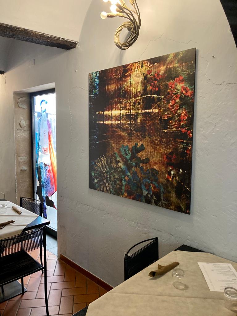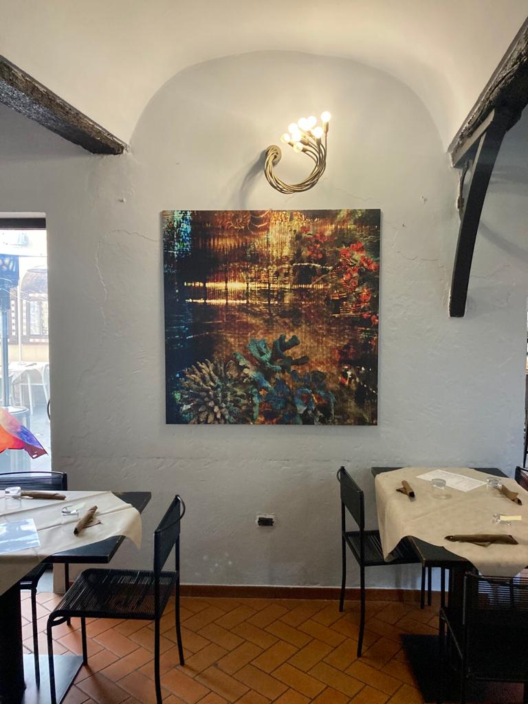 120 x 120 cm / mixed media – digital collage – printed on ultra-lightweight / 2021 currently on display at the restaurant “la Spaghetteria”, Reggio Emilia, Italy